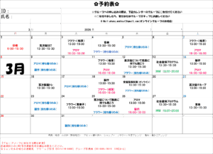 遅くなりましたが、3月のグループの予約表です。